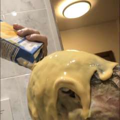 MessyLady_v2 had a carton of eggs busted over her head by messyg
